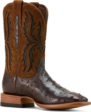 Kick up some style dust and wrangle in compliments with this ostrich-embossed leather Western boot featuring a killer stitch pattern on the contrasting suede shaft and cushioned with a removable insole for added comfort, while ATS® technology provides ergonomic support on uneven terrain.