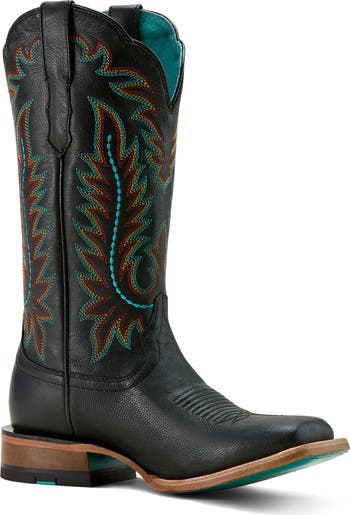 An artfully topstitched or weathered shaft brings chic style to this Western boot boasting a wide square toe, ergonomic cushioning and a TekStep grip sole.