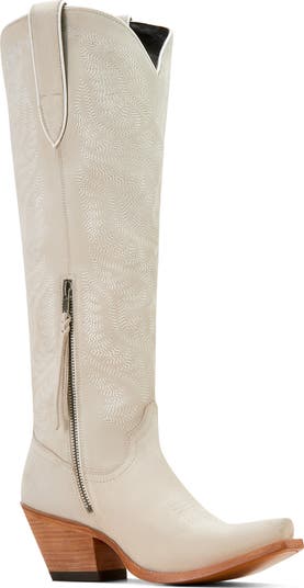 Hidden gore panels at the topline allow for easier movement and a more comfortable fit on this traditional boot styled with a pointed toe and Western block heel.