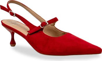 Step up your style with this slingback pump featuring a coned heel and a pointed toe.