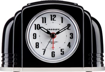 A glossy finish brings sleek art deco-inspired design to this snooze-enabled alarm clock with a quiet-sweep Quartz movement ensuring accuracy without loud ticking sounds.