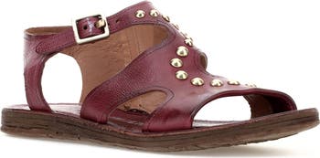 Polished studs highlight the swirling asymmetric design of this standout leather sandal.