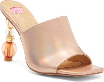 Stacked beads and baubles accent the striking statement heel of this party-ready sandal, complete with a square toe and a hidden elastic inset for added flexibility.