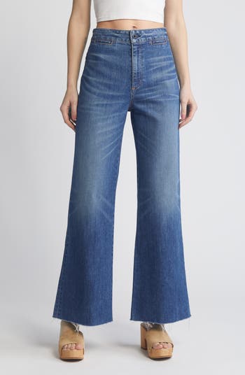 Far-out fashion, in all its groovy glory, comes through in these '70s-inspired jeans cut from Japanese denim with a superhigh waist and raw-hem wide legs.