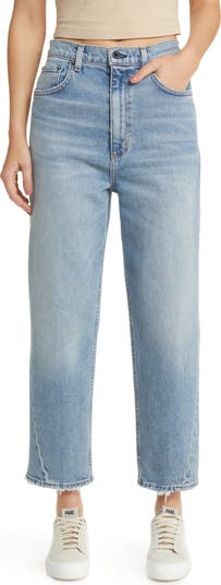 These non-stretch jeans create a dramatic profile with a high waist, ankle-length wide legs and a faded-blue wash that's chic for everyday wear.