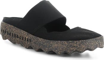 A colorblocked design enhances the curved lines of a comfort-minded slide grounded by a signature sole made of cork and latex.