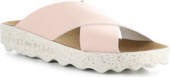 Pebbled straps crisscross over this sport-casual slide sandal set on a contoured footbed and lightweight cork-blend sole.