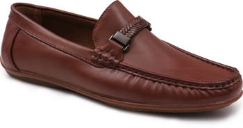 A braided vamp strap adds sophisticated detail to a classic moc driver that is crafted from soft faux leather.