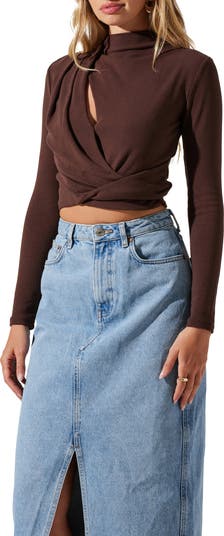 Elegant pleats and twists lend beautiful dimension to a soft long-sleeve top punctuated by a slender cutout on the bodice.