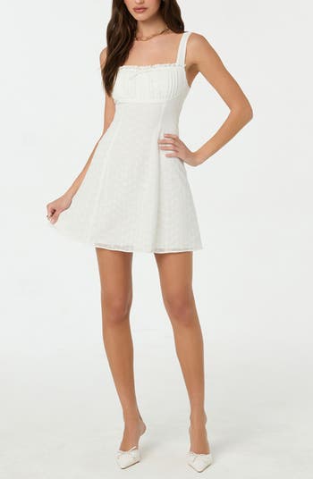 Effortlessly chic, this minidress brings a flirty finish with its ruffle-trimmed neckline and flattering silhouette. The breathable cotton fabric and whimsical eyelet details make it a party-perfect choice.