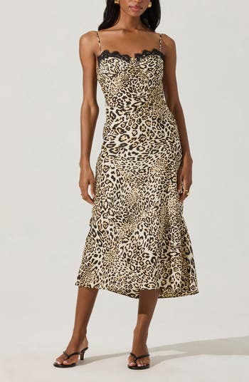 Underwire cups edged in delicate lace turn up the heat on a figure-skimming slipdress cut from shimmery satin.