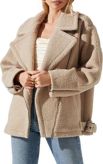 Love the irresistible look and feel of this cozy jacket cut from fluffy high-pile fleece with oversized lapels and zippered cuffs.