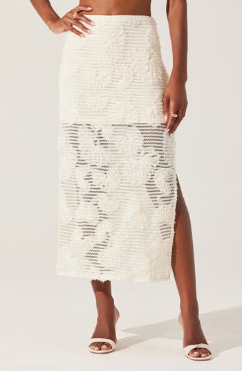 Fluttering flowers alight upon the sweetly stitched surface of this dreamy skirt, slit at one side and lined only where it needs to be.