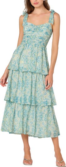 A smocked back and ruched front bring intricate texture to the bodice of this tiered sundress sure to charm from garden parties to date nights.