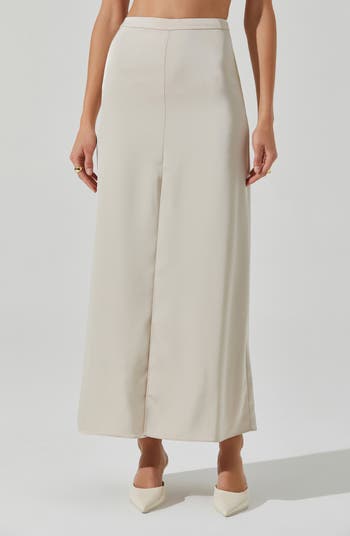 A minimalist maxi skirt with endless versatility is cut from a seasonless woven fabric with a step-easing front slit that shows off a little leg.
