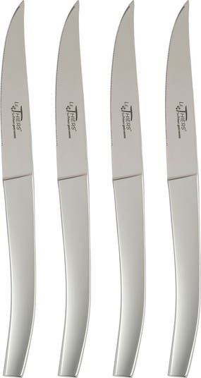 Dating back for over six hundred years, the Thiers region of France is renowned for its excellence in knife making. Au Nains Le Thiers steak knives are meticulously handcrafted in the bucolic hills of southern France, where each knife is individually handmade by local artisans using time-honored craftsmanship, preserving the tradition of high-quality knife making. Featuring sleek and sophisticated stainless-steel handles, these elegantly curved steak knives will enhance any casual or formal table setting.