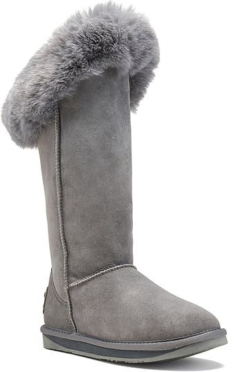 A cozy shearling cuff emphasizes the wintery charm of a knee-high boot that's also lined with genuine-shearling as a bonus comfort feature.