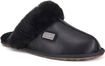 Plush genuine shearling makes this mule-inspired slipper a stylish and ultra-cozy option for around-the-house wear.