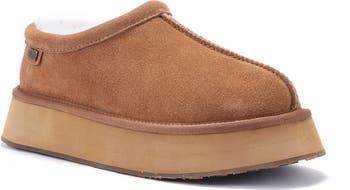 Stay as cozy as can be in this plush genuine-shearling slipper set on a just-right platform.