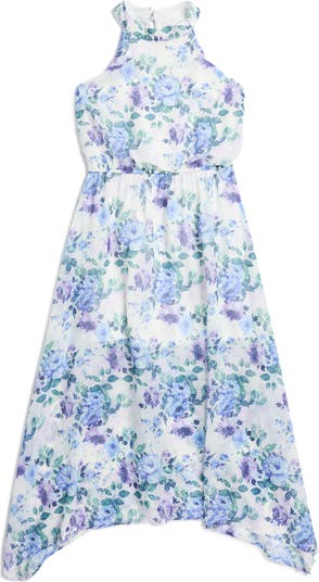 Little ones will feel extra special in this flowy maxi dress styled with a halter neckline and a vibrant print that captures the joy of spring.