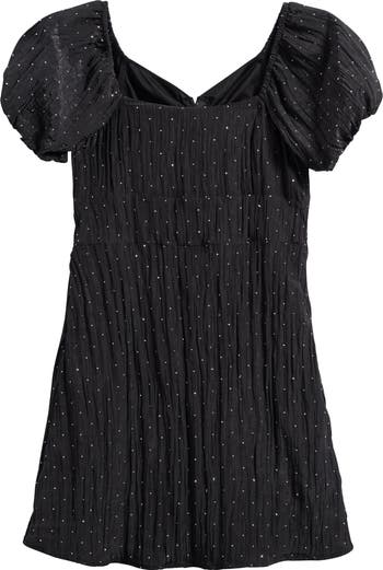 They'll be feeling their brightest in this cutout party dress made of lightweight taffeta that sparkles in the light with gleaming rhinestones.