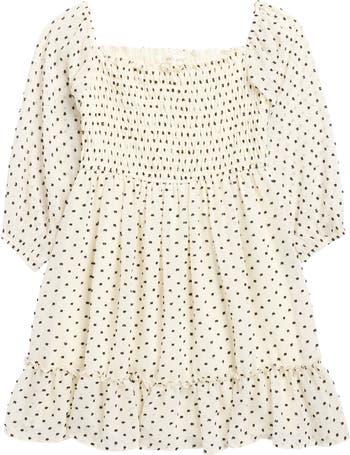 A smocked bodice lends on-trend appeal to a clip-dot dress that your budding fashionista will love to style.