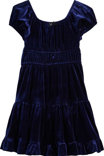 They'll have fun twisting and twirling in this supersoft velvet party dress rendered in a babydoll-inspired silhouette that's tiered and playful.
