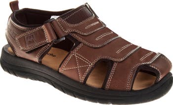 Head outdoors in this classic fisherman sandal constructed with an adjustable hook-and-loop strap and a grippy rubber sole.