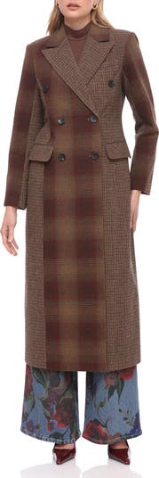 Look perfectly classic on your chilly commutes wearing this distinguished double-breasted long coat in colorblocked plaid.