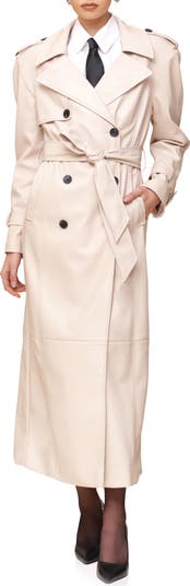 Upgrade your outerwear options by adding this double-breasted trench designed with classic detailing and authentic-look faux leather for an edgy touch.