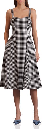 A sweetheart neckline enhances the flattering fit-and-flare shape of this charming midi dress animated by a kitschy print and finished with handy pockets for everyday ease.