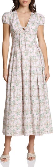 Pleats off the waistline create a fit-and-flare silhouette on a linen-blend maxi dress that has you looking elegant from garden parties and beyond.