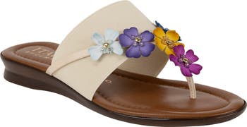 Monochromatic floral appliqués add dimension to this vacation-ready style to this Italian-made sandal set atop a cushioned footbed.