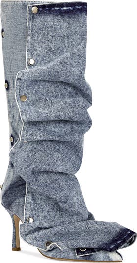 Polished studs highlight the slouchy silhouette of this distinctive stiletto boot.