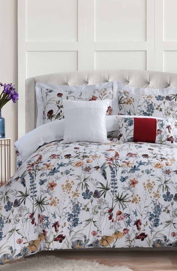 Refresh your bedroom with this comforter set made from 300-thread-count cotton and covered in painterly blooms.