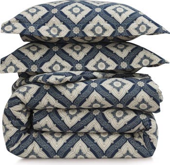Stay cozy in chilly temperatures with this cotton-flannel comforter set featuring a geometric print that's relaxed-yet-elegant style to your room.