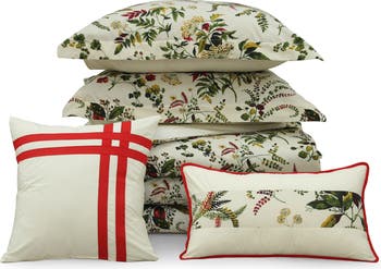 Bring a whimsical touch to your space with this cotton bedding set including a comforter, shams and throw pillows in a charming foliage design.