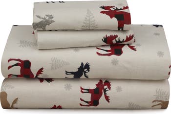 Deck your bedroom with holiday cheer with this moose-themed sheet set crafted from breathable cotton flannel.