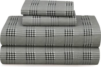 This cotton sheet set, including a flat sheet, fitted sheet and shams, is finished in a classic plaid print for timeless comfort and style.