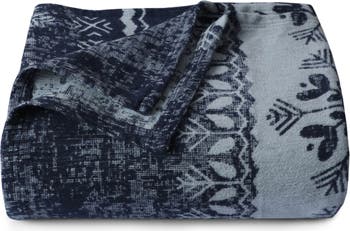 A holiday-printed throw blanket made from soft breathable organic cotton brings cozy vibes to any living space.