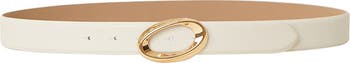 Glossy hardware elevates a versatile belt rendered in rich leather for timeless appeal.