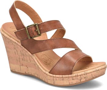 - - Open toe - Ankle strap with adjustable buckle closure - Lightly padded footbed - Cork platform wedge heel - Approx. 3" heel, 0.5" platform - Imported