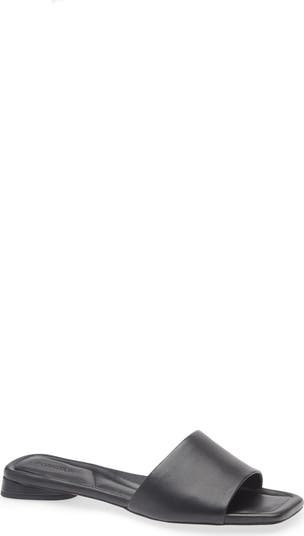 A memory foam-cushioned footbed lends covert comfort to this minimalist slide sandal fronted by a trending square toe.