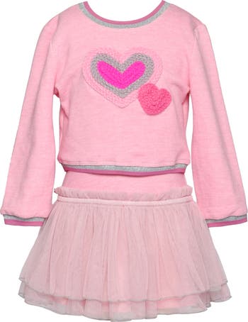 Braided hearts add sweet style points to the sweater-styled bodice of a mixed-media dress complete with a chic tutu skirt.
