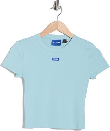 This ribbed crewneck short-sleeve baby tee is made from a soft cotton blend for a comfortable, flattering fit with everyday wearability.