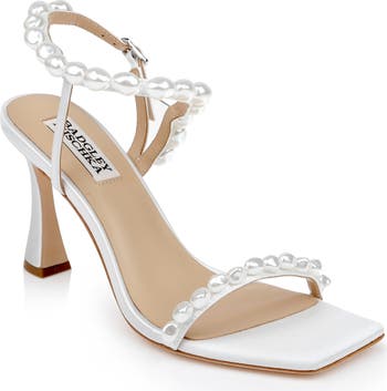 Complete your special-occasion ensemble with the timeless sophistication of a satin sandal topped with pearly beads.