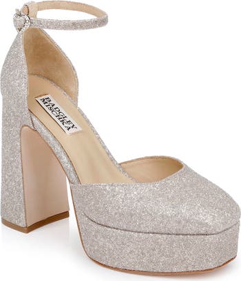 A lofty platform and sky-high block heel add scene-stealing height to a party-ready pump set on a cushioned footbed perfect for dancing the night away.