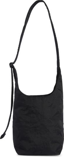 An adjustable strap and durable nylon distinguish a versatile sling bag fitted with a spacious interior perfect for on-the-go organization.