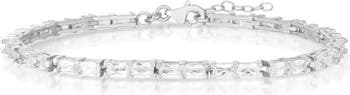Baguette-cut cubic zirconia sparkles and shiens on this rhodium-plated sterling silver bracelet.