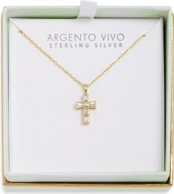 Baguette Cubic Zirconia Mini Cross Pendant Necklace